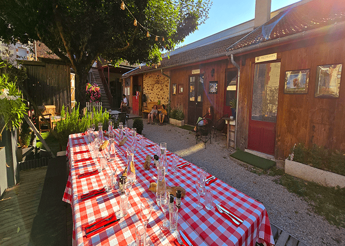 Pour le dîner, que nous prenons avec vous, une grande table commune sera dressée pour vous acceuillir et si le temps est idéal, celle-ci sera installée à l’extèrieur pour une soirée Barbecue.